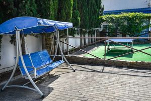 Есть парковка бесплатная.Батут детский.Каркасный бассейн для детей.