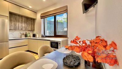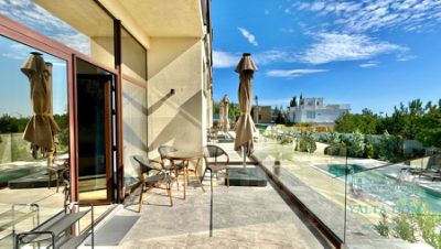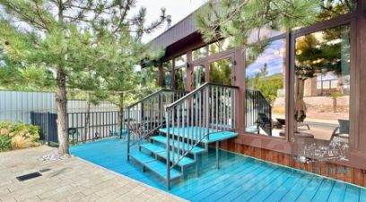 Таунхаус 83 кв.м. на территории 24 сотки: бассейн с подогревом, баня, эксплуатируемая крыша с видовой площадкой, садовая мебель для отдыха, панорамное остекление, большая терраса с мебелью и видом на бассейн.