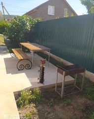 На кухне есть вся необходимая посуда. Во дворе имеется навес, мангал для приготовления шашлыка. Есть парковка для авто. Заезд после 14.00, выезд до 12.00 ( Время заезда -выезда можно корректировать).