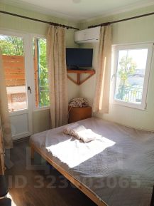 Небольшой двухэтажный домик,расположен в частном секторе,на первом этаже кухня и санузел,второй этаж две раздельные комнаты с балконами,в каждой комнате двухспальная кровать.