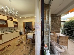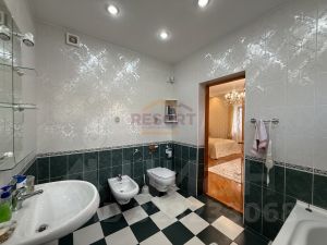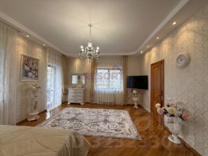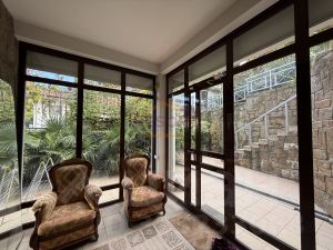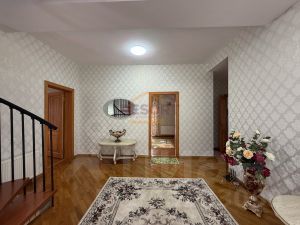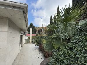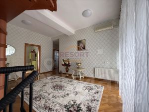 Дом в центре города, есть гараж для парковки авто, зелёный двор, свое газовое отопление, сауна, зона барбекью, три этажа, семь спален, восемь санузлов.