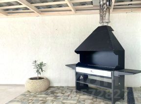 На первом этаже: вход в дом, прихожая, вместительный шкаф для одежды, зеркало, банкетка, санузел совмещенный с душевой кабиной и стиральной машиной, кухня-гостиная с панорамным остеклением, большим раскладным диваном, TV, выход на террасу во внутренней дворик к мангальной зоне с обеденным столом и зоной отдыха: с садовой мебелью, двумя шезлонгами и качелями.