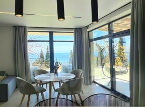 В каждой из спален: двуспальная кровать с ортопедическим матрасами, плазменный телевизор, вместительный шкаф для одежды, кондиционер, плотные шторы блэкаут; на этаже, - санузел с ванной и панорамным видом на море.