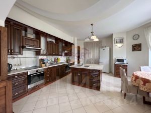 На трех этажах виллы - просторная кухня-столовая, холл-гостиная, 3 спальни, детская, 3 санузла.