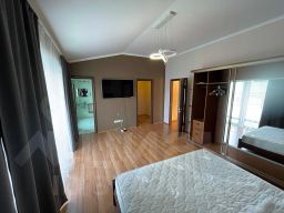 Сдается дом р-н Залесская Республика Крым, Симферополь Аральская с видом на лес.на участке 4 сот. Площадь дома 280 кв.м (плюс недостроенная терраса 30 кв.м) предусматривает два жилых этажа и цоколь-гараж.На первом этаже дома расположены: прихожая, кабинет (или гостевая комната), санузел с душевой, кухня-гостиная, 2 выхода.На втором этаже — 3 спальные комнаты, 1 гардеробная, 2 ванные комнаты.На цокольном этаже расположены: просторная комната свободного назначения (предусмотрено под спортивный зал), гараж со стеллажами, гардеробная-склад.Ремонт выполнен из высококачественных отделочных материалов, в приятной цветовой гамме. В доме много света и простора. Теплые полы. Укомплектован всей необходимой мебелью и техникой для комфортного проживания. Эксклюзивные элементы декора.Участок 4 сотки, плодовые деревья и цветы.Гараж с автоматическими воротами на два автомобиля с входом в дом, гостевые парковки.Удобное расположение, уникальный природный ландшафт с лесной зоной, выгодное месторасположение и отличная транспортная доступность. Есть зона для тренировок -зона прачечной -подсобное помещение 20м -подсобное помещение с резервуаром для воды (2 куб). Не смотря на перебои с водой, вода есть всегда. 2 спальни с видом на лес -санузел На каждом этаже тёплый пол. Зоны отопления разделены, каждый этаж отапливается отдельно. Сплит система LG, 2 телевизора. холодильник с льодогенератором, посудомоечная машина, стиральная машина и т.д. ЕСТЬ ТОРГ