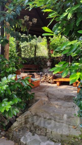 Общая площадь участка составляет 50 соток, сделан по террасному типу с небольшими рукотворными водоемами для уединения и созерцания гор. Все максимально озелененное.