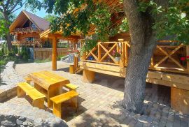 Возле дома: стоянка, мангальная зона, большая облагороженная территория, есть общий большой бассейн.