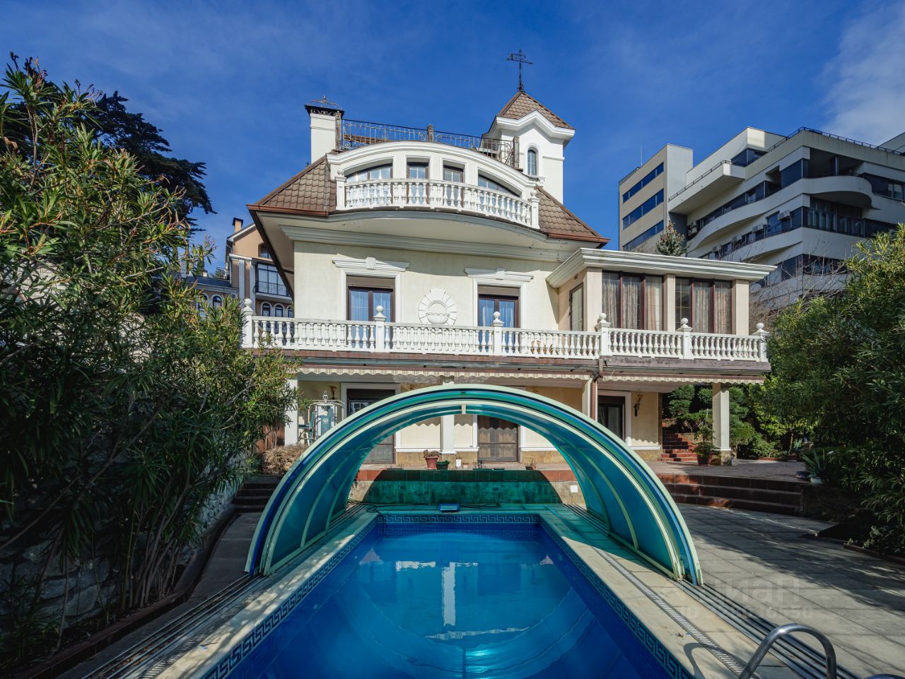Сдается уютный дом расположенный в самом престижном и известном районе Ялты - Приморском парке. В доме 3 спальни , размещение до 6 человек, свыше за дополнительную плату. В доме две двухспальных кровати, два двухспальных и два полуторных дивана, плюс раскладная односпальная кровать. Бронь от 14 дней по предоплате. - апрель -450 000 рублей в месяц; - май 500 000 рублей в месяц; - июнь 500 000 рублей в месяц; - июль 650 000 рублей в месяц; - август 650 000 рублей в месяц; - сентябрь- 600 000 рублей в месяц При заезде взимается страховой депозит в размере 100 000 рублей. Возврат депозита осуществляется в течении 24 часов после выезда(после полного осмотра и уборки дома и территории). Общая информация На территории, площадью 9,3 сотки, расположены: - основной дом - гостевой дом. - беседка с мангальной зоной для отдыха: Уютное место для встреч с друзьями и семьей. - бассейн с зоной солярия: Наслаждайтесь солнечными днями и охлаждайтесь в бассейне. - крытая площадка для парковки пяти автомобилей. - выполнен ландшафтный дизайн и высажены редкие экземпляры хвойных и экзотический южных растений: Китайские веерные пальмы, Голубые ели, Олеандры, Цикас, Декоративный тростник, Агавы, Самшит, несколько разновидностей роз, Девичий виноград (Вичи). - искусственный водопад: Создайте свой зеленую оазис! - лаундж-зона: комфортное пространство с садовой мебелью и качелью. На отдельной террасе расположен фруктовый сад с плодоносящими деревьями: абрикос, инжир, черешня, фейхоа, гранат, яблони, хурма (арендатор может пользоваться плодами по мере созревания фруктов). Общая площадь дома - 285 м2 В доме две открытые видовые террасы. Эксплуатируемая кровля На первом этаже расположены: - спальни: две уютные спальни, в каждой двухспальные кровати и выход к бассейну. - гардеробная с прачечной. - совмещенный санузел с джакузи и душевой. На втором этаже расположены: - гостиная с действующим камином. Из гостиной Вы попадаете на открытую террасу с потрясающим видом на море и парк. В гостиной два дивана с двуспальными местами для сна. - комната для отдыха с полуторным диваном. - кухня с выходом на придомовую территорию для организации пикников. - гостевой санузел На третьем этаже расположены: - спальня с камином. Оборудована двумя видовыми террасами. В комнате полуторный диван. - совмещенный санузел, установлена душевая кабина. В доме видовая эксплуатируемая кровля, где можно оборудовать дополнительную зону отдыха. Преимущества локации. Дом находится в непосредственной близости от: - Спа-комплексы: - Рестораны и кафе: - Салоны красоты: - Современные пляжи: - Городская набережная: Идеальное место для прогулок и активного отдыха. *Стоимость зависит от периода проживания, количества суток и количества гостей. Уточнять предварительно.*В случае если на заселение приедет большее количество гостей чем указано в описании, собственник имеет право увеличить стоимость или отказать в размещении без возврата предоплаты.