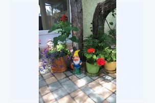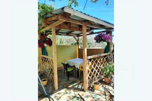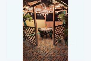 Комфортно будет посидеть и отдохнуть во дворике, так как к дому прилегает своя зона отдыха, на которой расположены беседка, стол со стульями, шезлонг, садовые качели, сушилка для белья (все это предназначено только для этого домика).