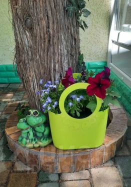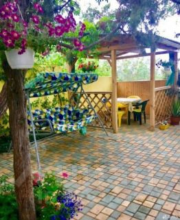 Имеется своя индивидуальная зона отдыха: беседка, садовые качели, шезлонг, стол со стульями, сушилка для белья.