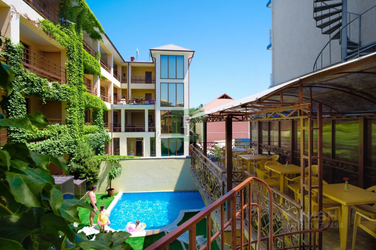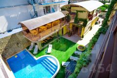 Комплекс представляет собой 4-х этажное здание + цоколь 100 кв. м. + постройка, кафе , смотровая зона, зона отдыха с бассейном , 2 помещения для персонала.