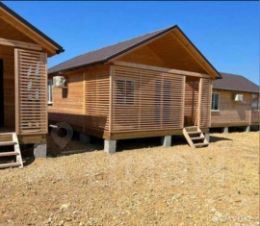 9 отдельно стоящих двухкомнатных домиков из бруса. Площадь каждого дома ЗОм2+ терраса12м2. Скважина, 2 биостанции, электричество 30 Кв, разведены все коммуникации, участок огорожен забором по