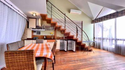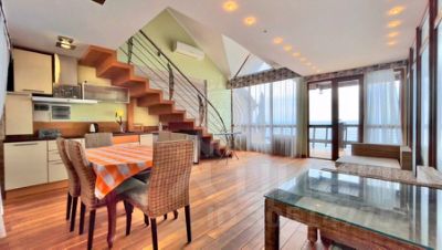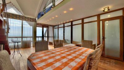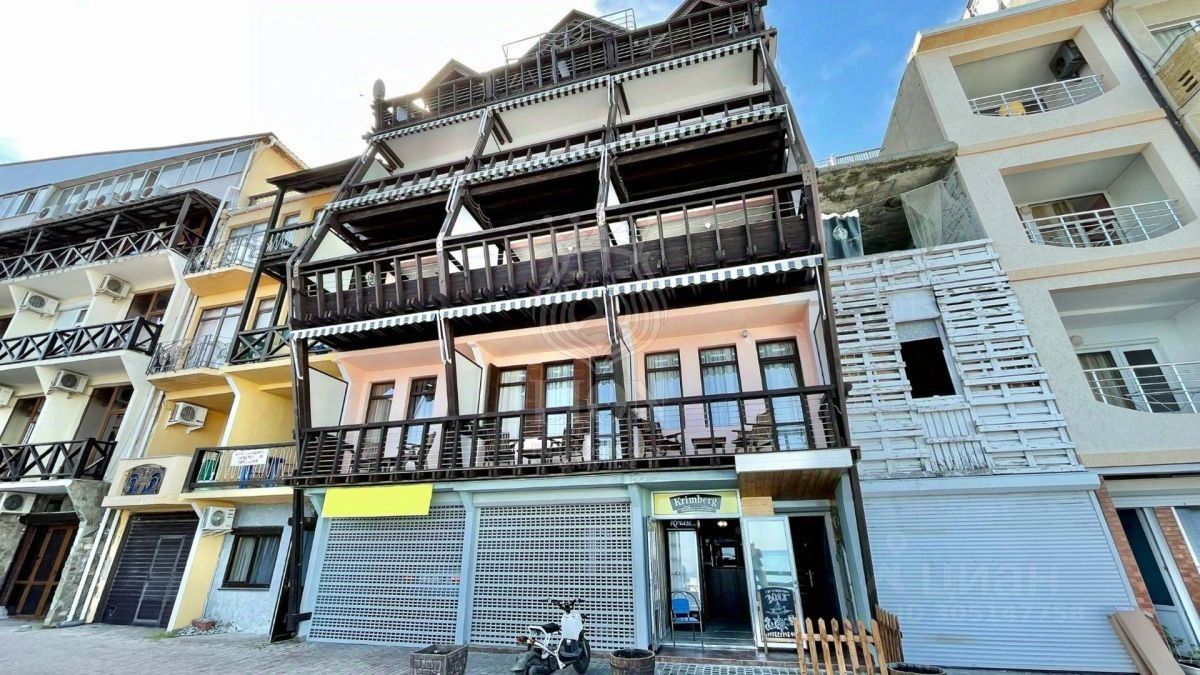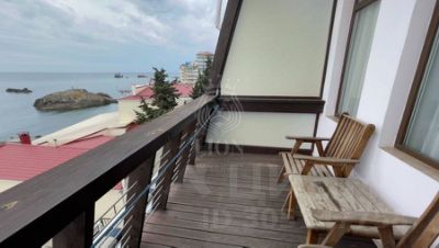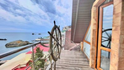 Гостевой семиэтажный дом - это комплекс апартаментов для сезонного или круглогодичного отдыха и проживания, общей площадью 880 кв. м. В гостевом доме расположено 18 номеров, разной категории: стандарт, улучшенный и номера класса люкс в двух уровнях. Все номера укомплектованы необходимой мебелью, бытовой техникой, бельем и текстилем. В номерах есть: санузел (туалет, умывальник, душ), спутниковое ТВ, холодильник, мини-бар, кондиционер, беспроводной интернет Wi-Fi, терраса с видом на море. В номерах люкс дополнительно есть большие комфортабельные кухни с гостиными комнатами. Кроме того, имеются номера для обслуживающего персонала и прачечная с хозяйственными комнатами и необходимым оборудованием. Помимо комфортабельных номеров, в гостевом доме есть кафетерий с хорошей кухней с возможностью комплексного или индивидуального приготовления различных блюд любого уровня, для отдыхающих. Кафетерий гостевого дома полностью оборудован мебелью, кухня укомплектована торговым оборудованием и посудой. По желанию отдыхающих возможен полный пансион. Также на первом этаже расположен автогараж. Гостевой дом имеет собственный пляж с шезлонгами и зонтами с защитой от солнечных лучей. На пляже всегда работает профессионал с образованием, лицензией и опытом массажиста. Выгодное месторасположение дома позволяет гостям добраться за короткое время к любой точки от Алушты до Ялты.