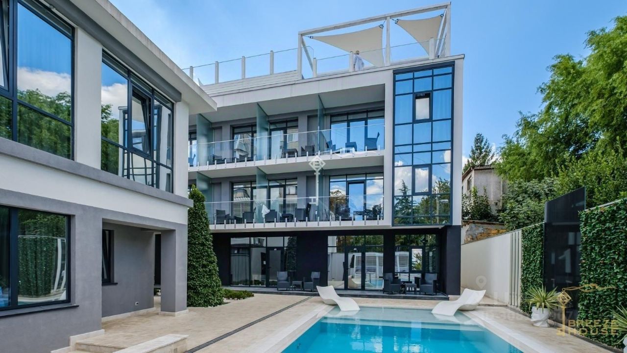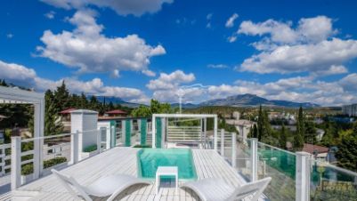 Продажа стильного бутик-отеля, состоящего из двух корпусов общей площадью 700 м² на благоустроенном участке 5,15 соток с бассейном и джакузи с видом на гору Демерджи, расположенного в самом центре Алушты в 15 минутах пешей прогулки до моря.