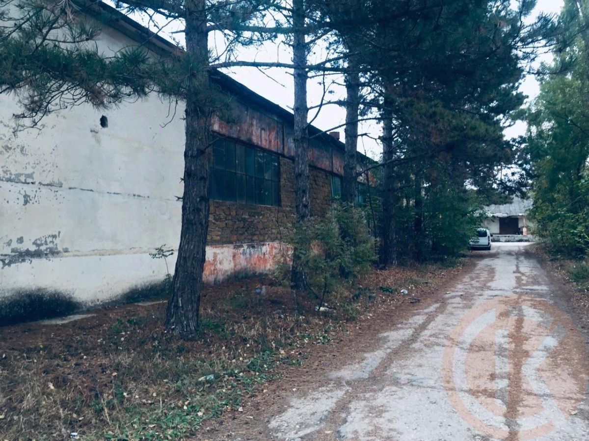 Здание, бывшая автобаза, под производственные нужды. ВРИ земли- производственная деятельность, категория - земли населённых пунктов. Земля в долгосрочной аренде, с правом выкупа. В помещении (из двух частей - производственное и административное), действующая кранбалка и таль, подведён газ, электричество три фазы, канализация рядом. Кровля целая , не подтекает. К базе ведёт асфальтовая дорога. Много парковочного места. Налог на землю по действующему договору, фиксированный. Выезд на трассу Евпатория-Симферополь 300 м.