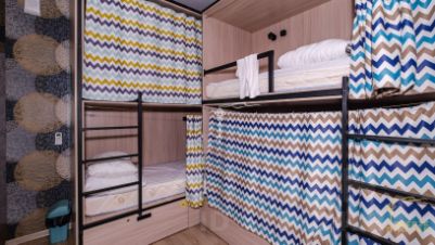 Все номера оборудованы кондиционерами, системой вентиляции и двухуровневыми кроватями-капсулами.