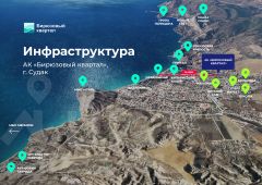 "Бирюзовый квартал" это восьмиэтажный комплекс апартаментов с развитой инфраструктурой, расположенный всего в 15 минутах ходьбы от благоустроенной набережной и оборудованного песчаного пляжа.