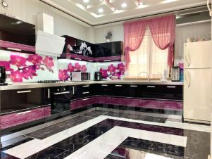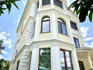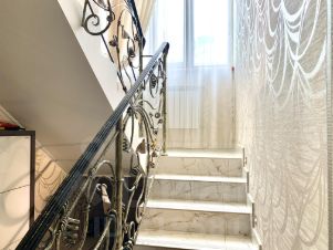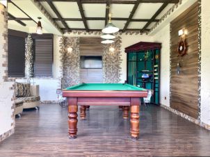 - Здание жилого дома 2013 года постройки, 3 - этажное, общей площадью 206,6 м² (без учета балконов и террас), включает в себя следующие помещения: 6 спален, просторная кухня-гостиная, бильярдная, сауна, холл, кладовые, 3 санузла, котельная. В доме выполнен качественный ремонт, в наличии вся необходимая мебель и техника. По всей площади 1 этажа предусмотрены тёплые полы. В каждом помещении установлен кондиционер. Отопление от двухконтурного газового котла. К дому прилегает территория с выполненным ландшафтным дизайном.