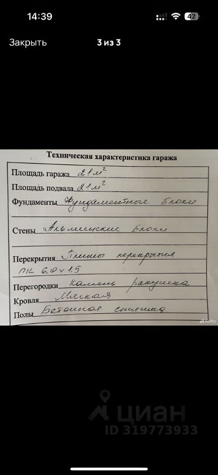 Гараж в ГСК 20, в первом ряду, площадь 21 кв.м, подвал сухой под всем гаражом.