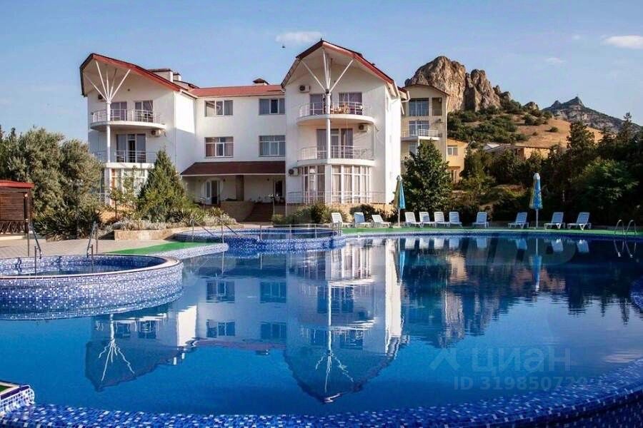 Предлагается к продаже действующий гостиничный комплекс в одном из самых живописных уголков Черноморского побережья — у подножия Кара-Дага, в 3 минутах пешком от моря и набережной.