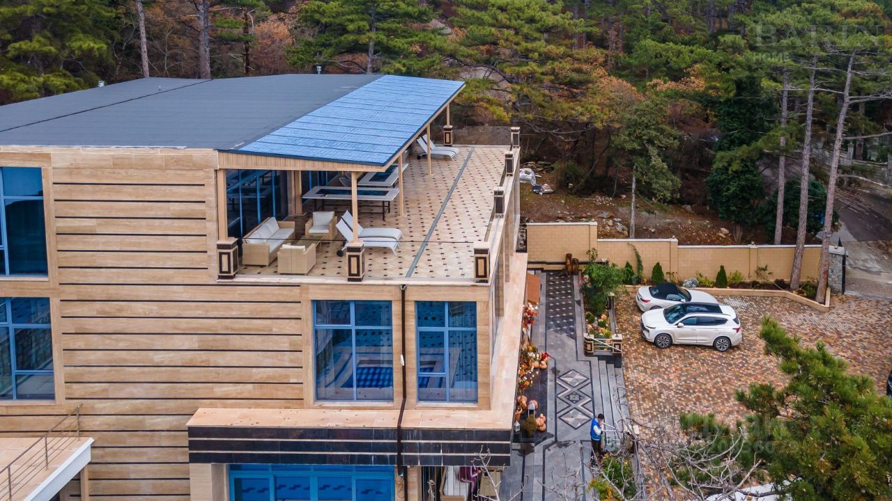 Отель расположен на 14,9 сотках земли. В стоимость продажи виллы включен земельный участок, прилегающий к вилле с дополнительной площадью 10 соток.