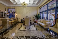 Строение Вилла 1 это вилла, состоящая из 7 номеров. Вилла состоит из трёх этажей. Площадь виллы составляет 760 кв. м., из которых 160 метров это терраса на третьем этаже. Фасад виллы облицован натуральным Иранским травертином. Вся входная группа, лестницы и перила выложены гранитом. Напольное покрытие первого этажа виллы состоит из узоров и панно нескольких видов мрамора. Столовая зона и зона кухни укомплектованы мебелью, роскошными стульями и большими столовыми столами. Ступеньки лестницы между этажами облицованы мрамором и подсвечены декоративной подсветкой. Кованные перила декоративной ручной ковки исполнены в стиле виноградной лозы. Вилла состоит из просторного холла, переходящего из зоны кухни к бассейну через столовую зону. В вилле семь спален, шесть гардеробных комнат, семь санузлов, два из которых с окнами и огромной террасы в 160 кв. м. на крыше. Виды из виллы на море, густой хвойный лес и скалистые горы. Место очень уединённое, тихое и приватное. Ремонт виллы выполнен на 100% из самых дорогих отделочных материалов, напольный ламинат в спальнях толщиной 1,5 см. Люстры, подвешенные в вилле привезены из Ирана. Вилла достроена и введена в эксплуатацию.