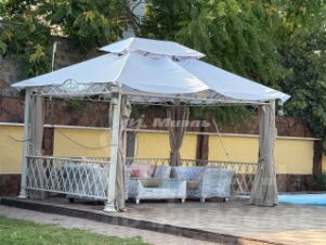 На территории расположены: бассейн, детский бассейн, оборудованная детская площадка, летняя кухня, хоз. постройки, мангальная зона, зона отдыха.