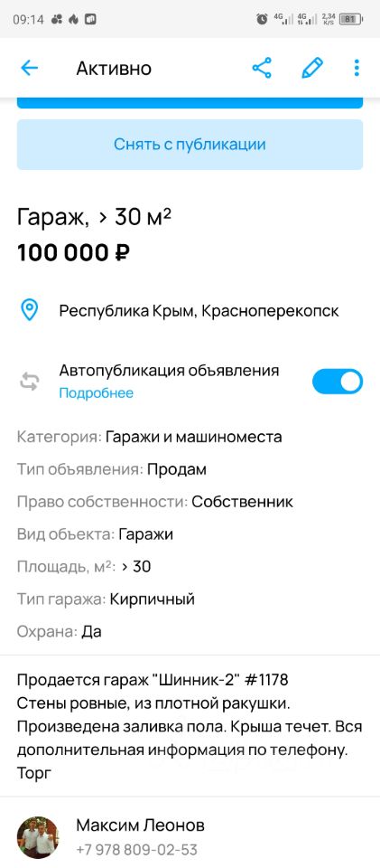 Добротный гараж, расположен в гаражном кооперативе "Шинник-2" В г. Красноперекопск, Республика Крым.