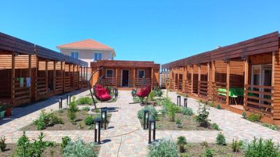 Продажа готовый действующий бизнес, гостиничный комплекс из 11 домиков + банька и столовая, в пригороде Евпатории на Песчанке, 850 м от моря.