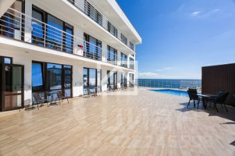 Гостиница представляет собой здание современной архитектуры, расположенное на первой линии у моря в удобной локации, рядом с оборудованными пляжами и живописными вечнозелёными парками.