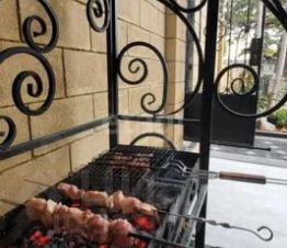 Расположен в удаленности от дороги в 50 метрах, большая закрытая территория для парковки, зоны отдыха, на территории большой открытый бассейн.