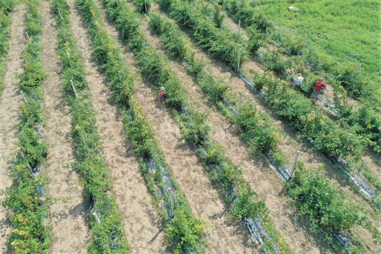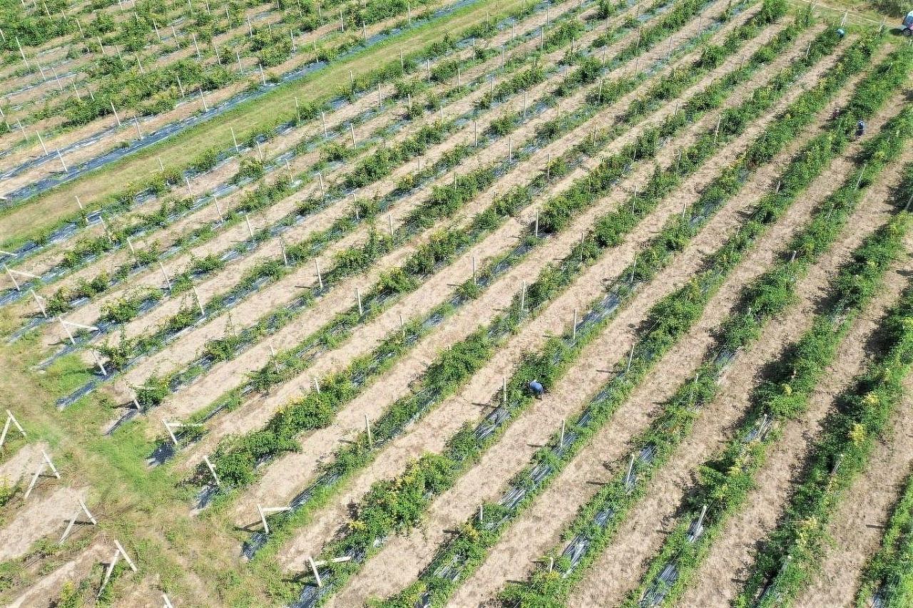 Участок полностью огорожен сеткой рабицей, есть 2 входа. На участке имеется большой склад, холодильная камера, вагончик и туалет. Вода из водопровода, также есть колодец.