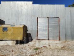 На фото виден внешний фасад. Сделан из железного каркаса и профлиста , широкие ворота , для загрузки/выгрузки. Что позволяет практически любой техники заехать .
