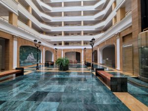 Вход в помещение отдельный, рядом со стойкой консьержа в центральном вестибюле или через смежное помещение с улицы возле центрального входа.