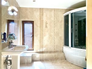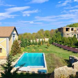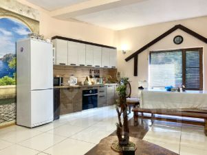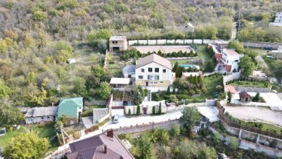 Основное здание жилого дома общей площадью 440 м², 3-этажное. Здание высочайшего качества строительства: монолитно-каркасная конструкция, наружные стены блочные (ракушечник), облицованные кирпичом. В доме предусмотрено: 7 спальных комнат, просторная кухня-гостиная, холл, барная зона, вспомогательные помещения, санузлы. Вход на 3-ий этаж дома - изолированный. В помещениях выполнен ремонт, состояние жилое.Здание гостевого дома 2006 года постройки, 2-этажное, общей площадью 120 м². Монолитно-каркасная конструкция, блочные (ракушечник) стены и перегородки. В здании предусмотрено: 2 спальных помещения, кухня, санузел, газовая котельная, кладовые помещения. В помещениях выполнен ремонт, состояние жилое.Нежилое здание 2016 года постройки, общей площадью 250 м², 2-этажное. Возведены основные несущие конструкции и стены здания (монолитный каркас и перекрытия,стены - ракушечник), здание зарегистрировано.Площадка (корт) для игр в теннис, баскетбол, волейбол;Кирпичное здание беседки с барбекю;Бассейн;Беседка, зоны отдыха и занятия спортом;Парковочная площадка на 6 машиномест.