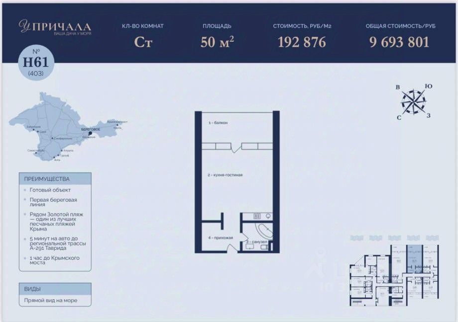 Прекрасные апартаменты на самом берегу моря со всеми коммуникациями под чистовую отделку.