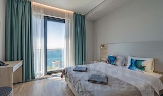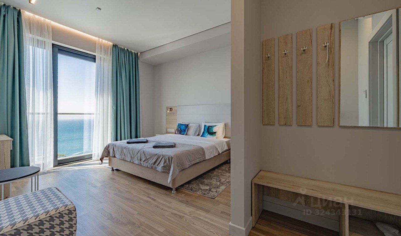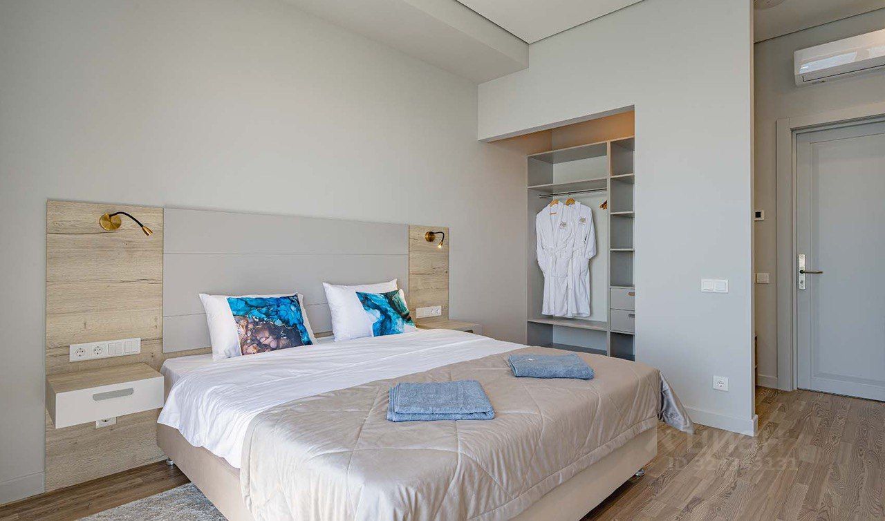 Второй номер находится на третьем этаже гостиничного комплекса и занимает площадь 38 м². Он также оснащен всей необходимой техникой, бытовыми принадлежностями, халатами и другими удобствами. Этот номер включает в себя уютную гостиную и просторную спальню с потрясающим видом на море, что добавляет ему привлекательности для арендаторов.