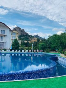 Предлагается к продаже действующий гостиничный комплекс в одном из самых живописных уголков Черноморского побережья — у подножия Кара-Дага, в 3 минутах пешком от моря и набережной.