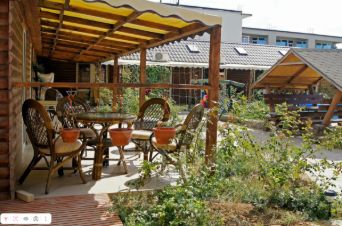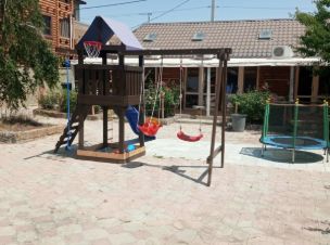 Большой ухоженный двор с детской площадкой, где ваши маленькие гости могут весело проводить время.
