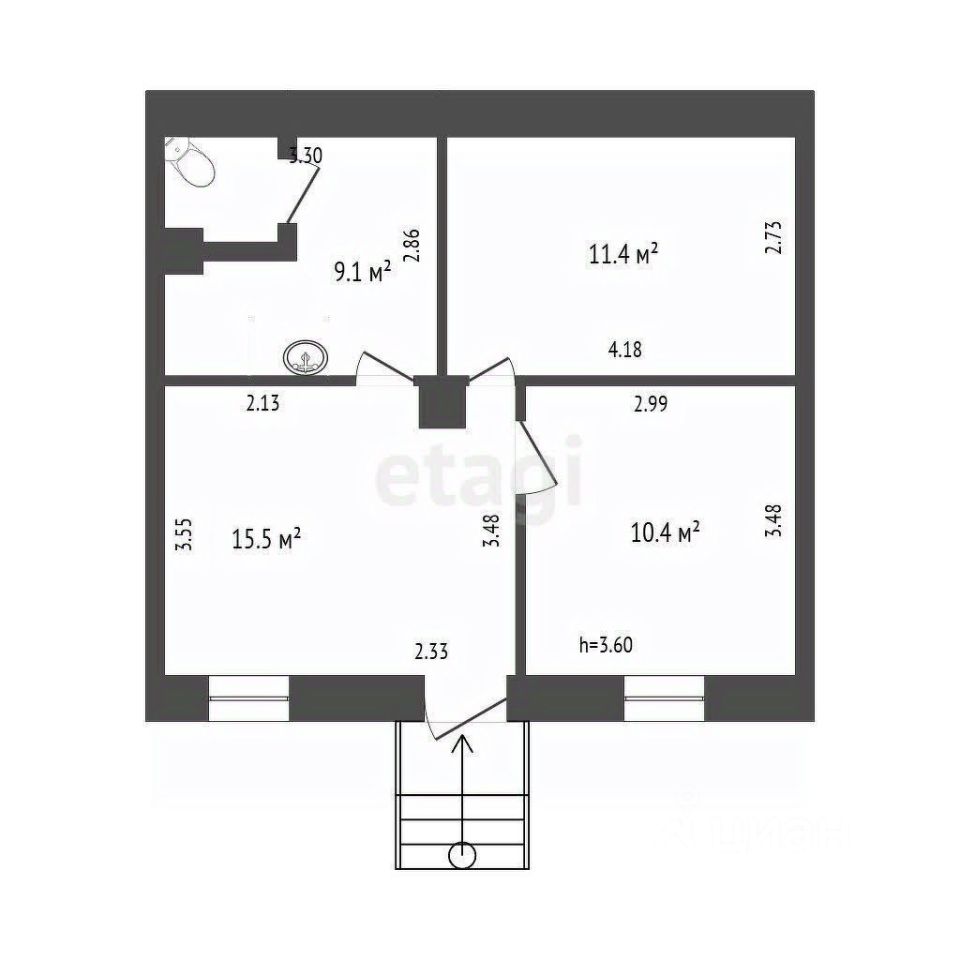 Объект обладает рациональной планировкой, включающей три изолированных кабинета, что оптимально для размещения офиса, медицинского центра или студии.