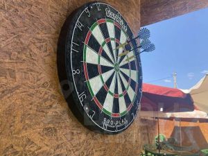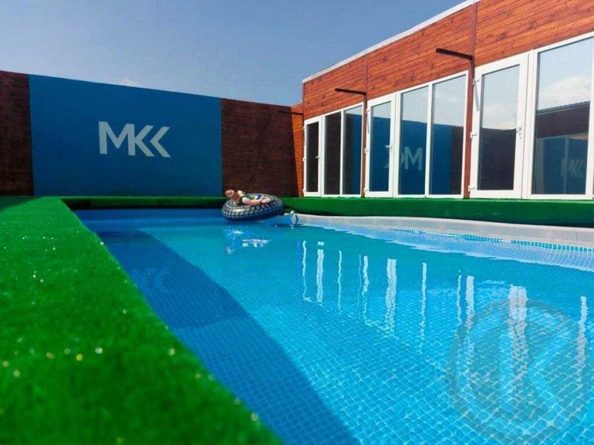 На территории базы отдыха имеются летний бар, кухня, бетонный танцпол, бассейн и зона для барбекю. Также на территории находится подсобный домик со стиральной машиной.