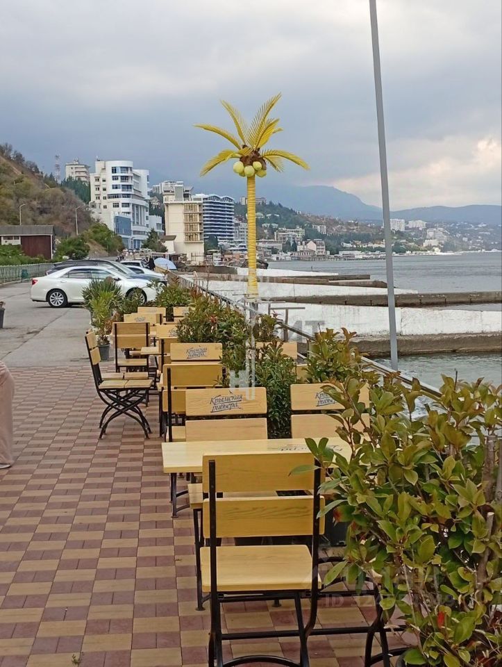 Кафе полностью оборудовано для работы: торговый зал, кухня с техникой (плиты, мойка, холодильное оборудование). С уличной зоны с столиками открывается вид на море. Вся необходимая мебель, инвентарь и приборы остаются новому владельцу.