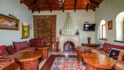 -На первом этаже расположен общий зал с камином и основная кухня со всем необходимым оборудованием.