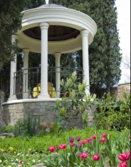 1.4 Га земельный участок, в зеленными насаждениями, парком,зона бассейна, беседками для отдыха, детскими площадками и спальные помещения, столовая и д.р. Общая площадь строений 2 436,3 кв.м. помещение соответствует СанПи для работы с детьми на 300 человек. в 2023году в дет.садик посещали 156 детей в возрасти от 1,5 до 3 лет.