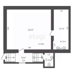 Общая площадь 52,3 кв.м., одна большая комната 32,4 кв.м. для основного зала и маленькая 11,7 кв.м для подсобного помещения. Имеется свой туалет с рукомойником.