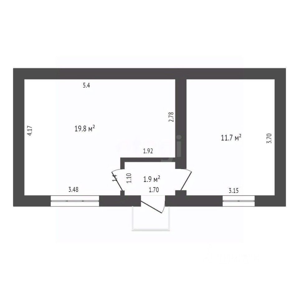 Свободная планировка: 2 изолированные комнаты (19.8 м² и 11.7 м²) + коридор.
