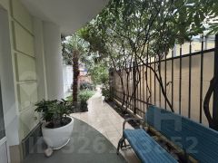 Дворовая территория благоустроена: здесь высажены экзотические деревья и цветы, установлены скамейки и качели.