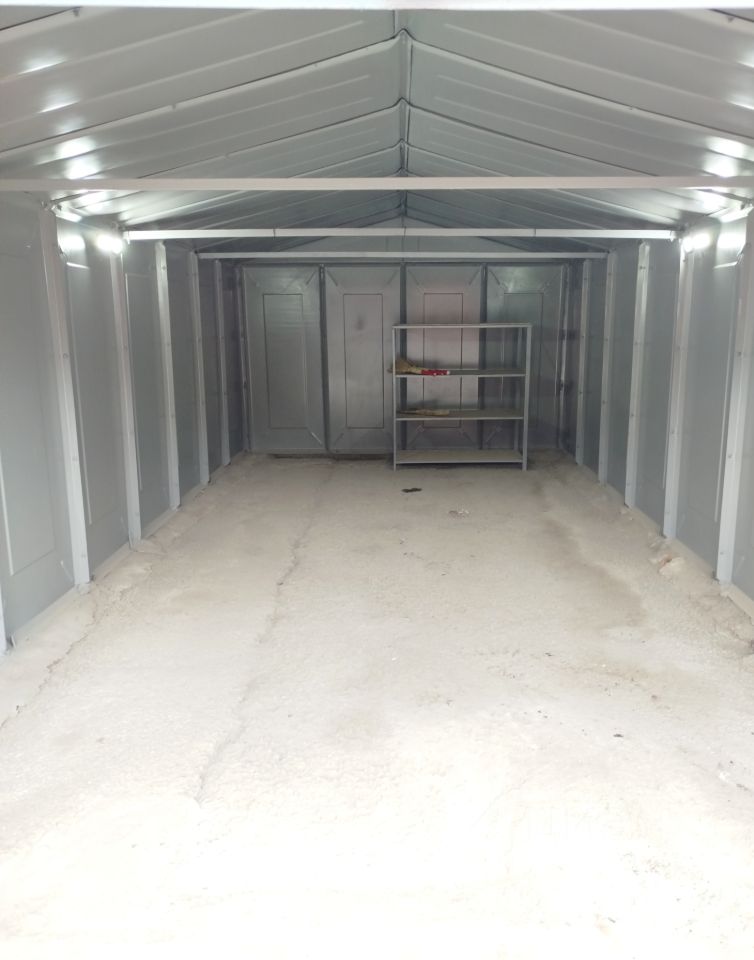 Сухой, просторный, не течёт (двери обшиты изнутри OSB -плитой, дополнительно новый шифер на крыше, пол - бетон).