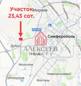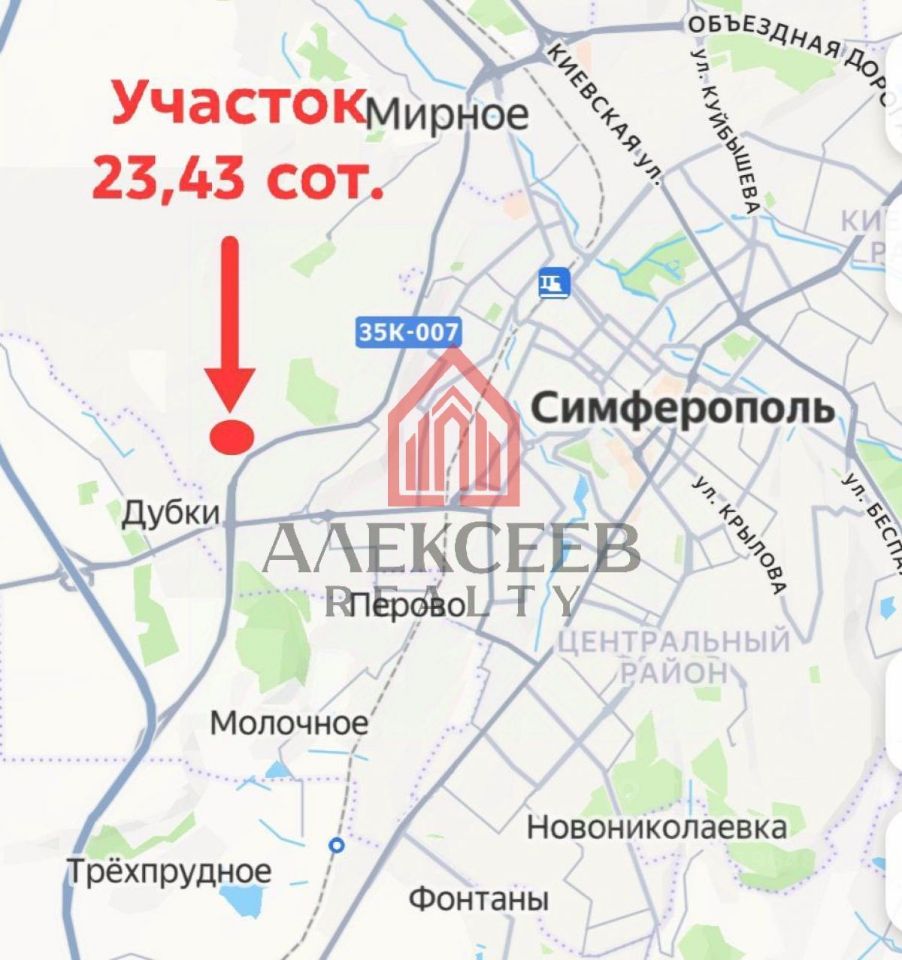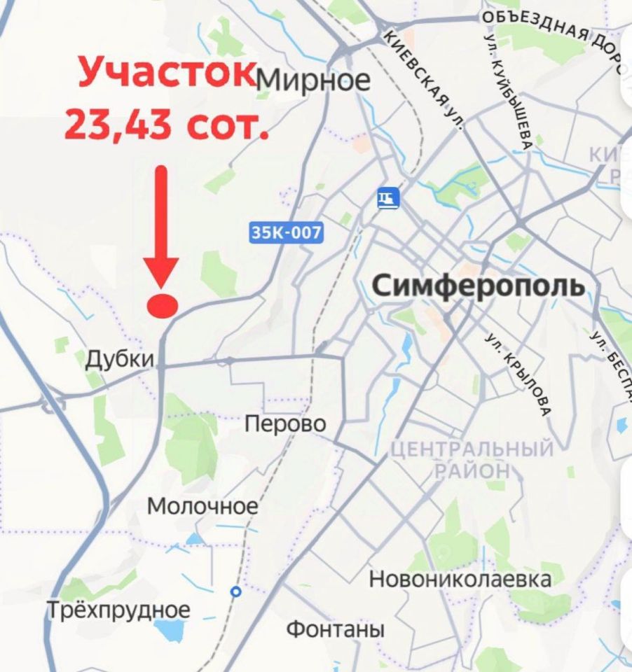 Участок расположен на первой линии Симферопольской объездной, перед съездом на автодорогу Симферополь Николаевка. Заезд как со стороны села Мирное, так и села Дубки.