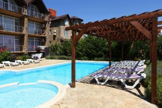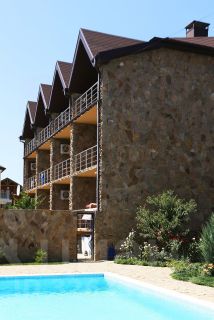 Объект работает круглый год, средняя загрузка — 60%, высокий рейтинг среди отдыхающих. Общая площадь — 838 м². В здании расположено: а)20 полностью оборудованных номеров (2225 м²) — каждый с санузлом, панорамными окнами и балконом; б)уютная квартира E2 (60 м²): гостиная с кухней, 2 спальни, санузел — идеально для проживания собственников или управляющего; в)кафе на 40+ посадочных мест, профессионально оснащённая кухня (пароконвектомат, посудомоечная станция, морозильный ларь, вытяжка и др.); г) 3 комнаты для персонала с общим санузлом. На ухоженной территории: • бассейн с подогревом воды, • летние беседки и детская площадка, • гараж, большая терраса, летний душ, • мелиорация, озеленение, декоративные деревья и кустарники.